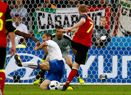 Bỉ được xếp ở cửa trên trước giờ bóng lăn. Nhưng Italy, với dàn cầu thủ bình dân và lớn tuổi, đã gây bất ngờ lớn khi giành chiến thắng trong cuộc đọ sức tại Lyon hôm qua, với các bàn của Emmanuele Giaccherini rồi Graziano Pelle.