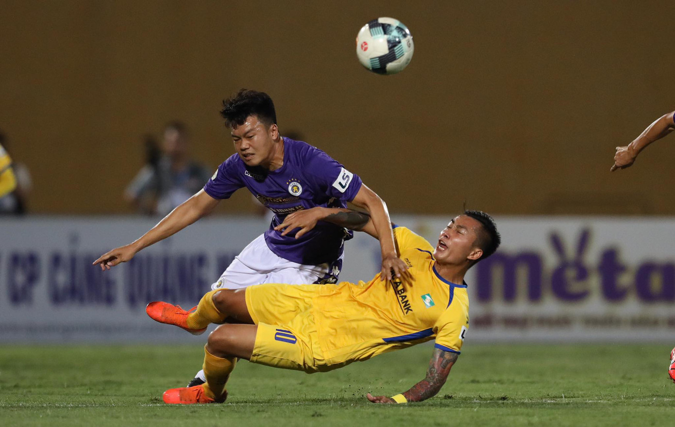 Sau 10 phút đầu bị đối thủ gây bất ngờ, Hà Nội FC đã trở lại với việc chiếm lĩnh lại thế trận. Nhưng họ gặp khó trong khâu tấn công trước sự đeo bám quyết liệt từ SLNA.