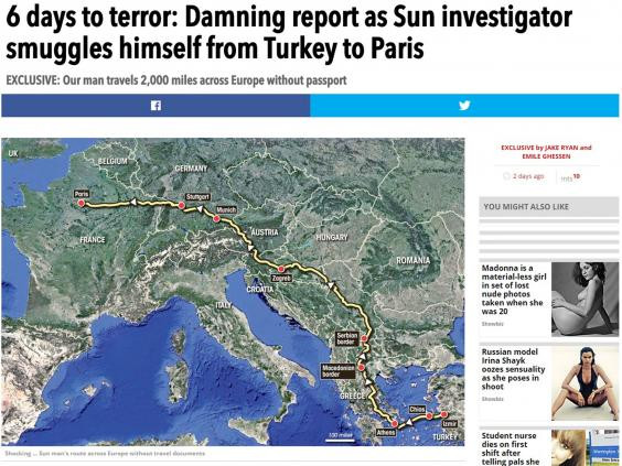 Theo nội dung bài báo, hành trình của phóng viên này giống với hành trình của những kẻ khủng bố trà trộn vào dòng người tị nạn vào Paris gây nên vụ tấn công đẫm máu nhất trong lịch sử nước Pháp vào ngày 13/11 khiến 130 người thiệt mạng và hơn 350 người bị thương.
