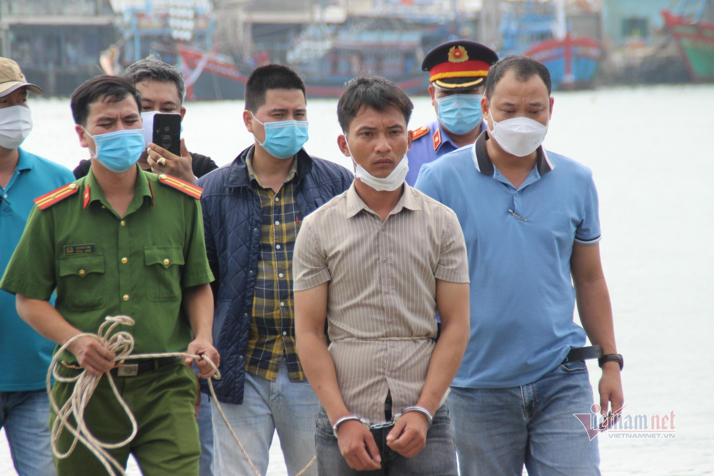| Công an tỉnh Quảng Nam dẫn giải nghi phạm Trần Văn Viên đi thực nghiệm hiện trường tại cầu Ông Hiển (bến đò Tam Hải). |