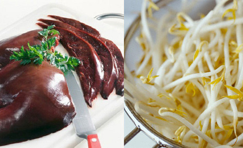 Hạn chế gan lợn xào với giá đỗ