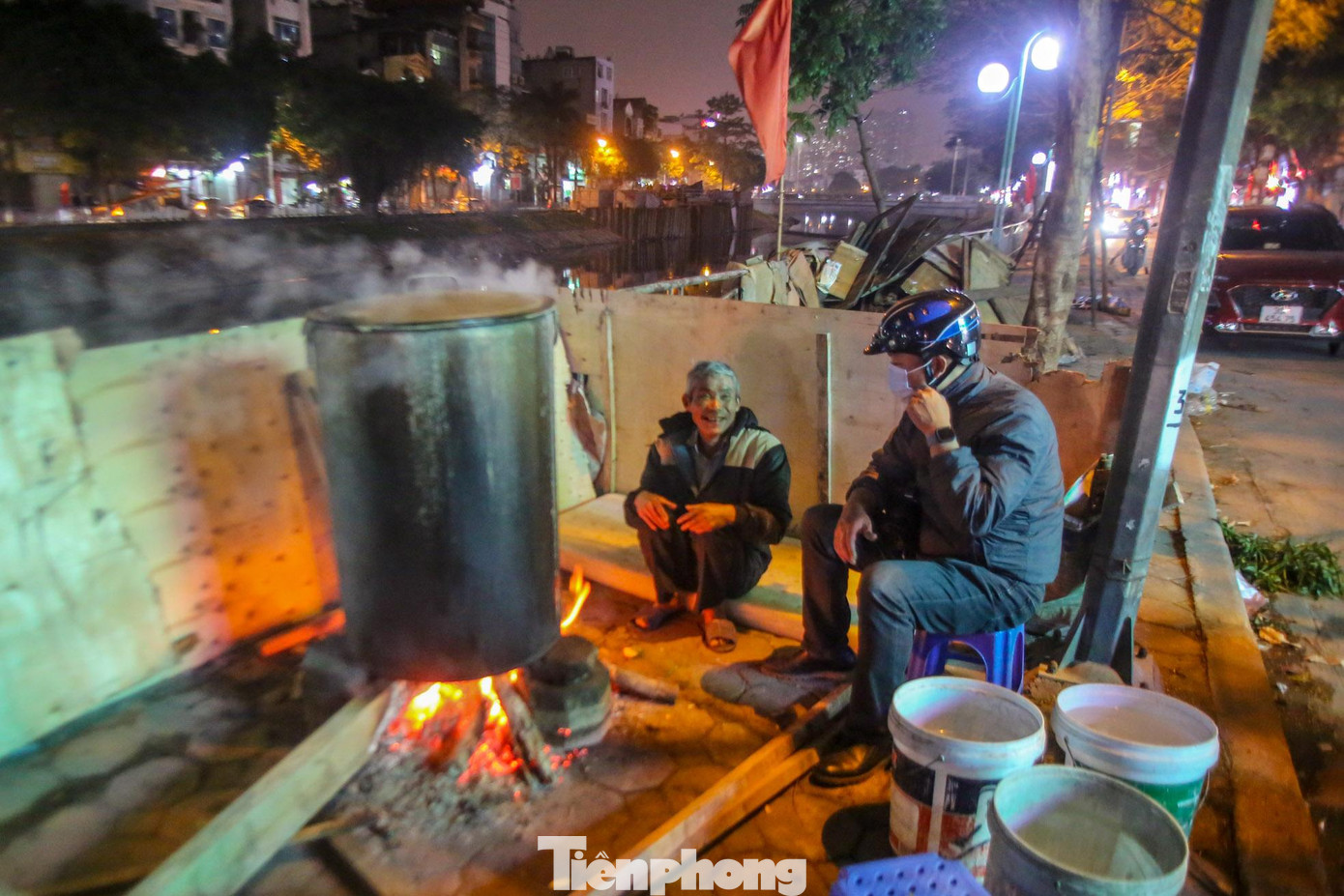 | Ghi nhận của PV, khi mọi người bắt đầu đi ngủ thì cũng là lúc vỉa hè các tuyến phố của Hà Nội như Khương Đình, Nguyễn Trãi, Vũ Tông Phan... bắt đầu đỏ lửa hồng, người dân quây quần, thức xuyên đêm bên nồi bánh chưng nghi ngút khói trong những ngày cận Tết Nguyên đán. |