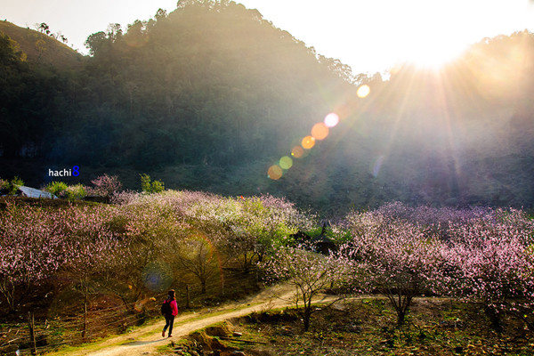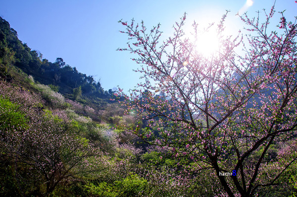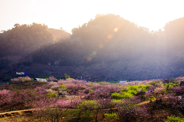 Trong nắng ấm của mùa xuân, những thung lũng rực rỡ màu hoa đào