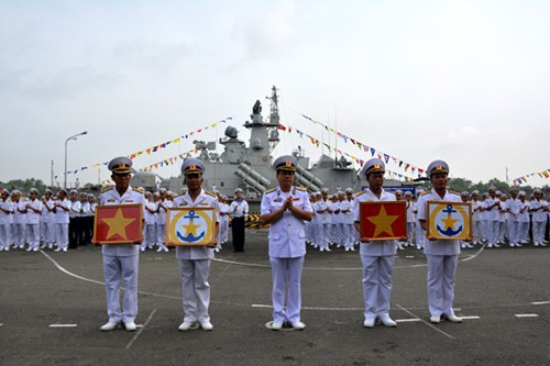 Tại lễ thượng cờ, lãnh đạo Vùng 2 Hải quân đã trao Quốc kỳ và Hải kỳ cho các đồng chí truyền trưởng, chính trị viên 2 tàu. Sau đó Quốc kỳ và Hải kỳ được kéo lên trên nóc hai tàu 382 và 383.