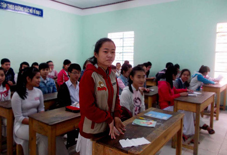 Cô Sang cho biết:"Nhà trường và thầy cô đều cố gắng giúp đỡ em như không thu học phí, kể cả dạy và học ngoài giờ".