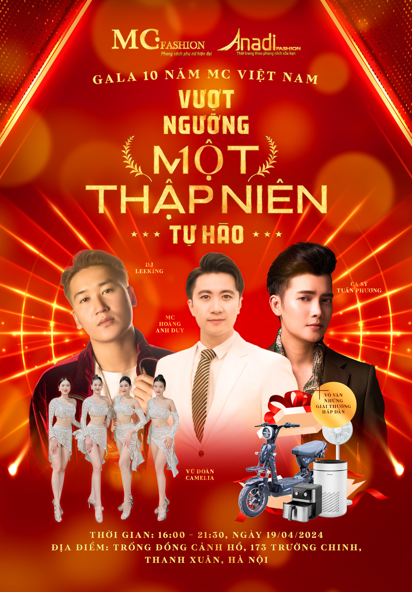 | Từ trái qua phải: Ông Lương Văn Cảnh - Chủ tịch MC Việt Nam, bà Nguyễn Mến - Nhà sáng lập MC Việt Nam và ông Nguyễn Tiến Luật - Tổng Giám đốc MC Việt Nam tại gala kỷ niệm sinh nhật lần thứ 9 của MC Việt Nam. |