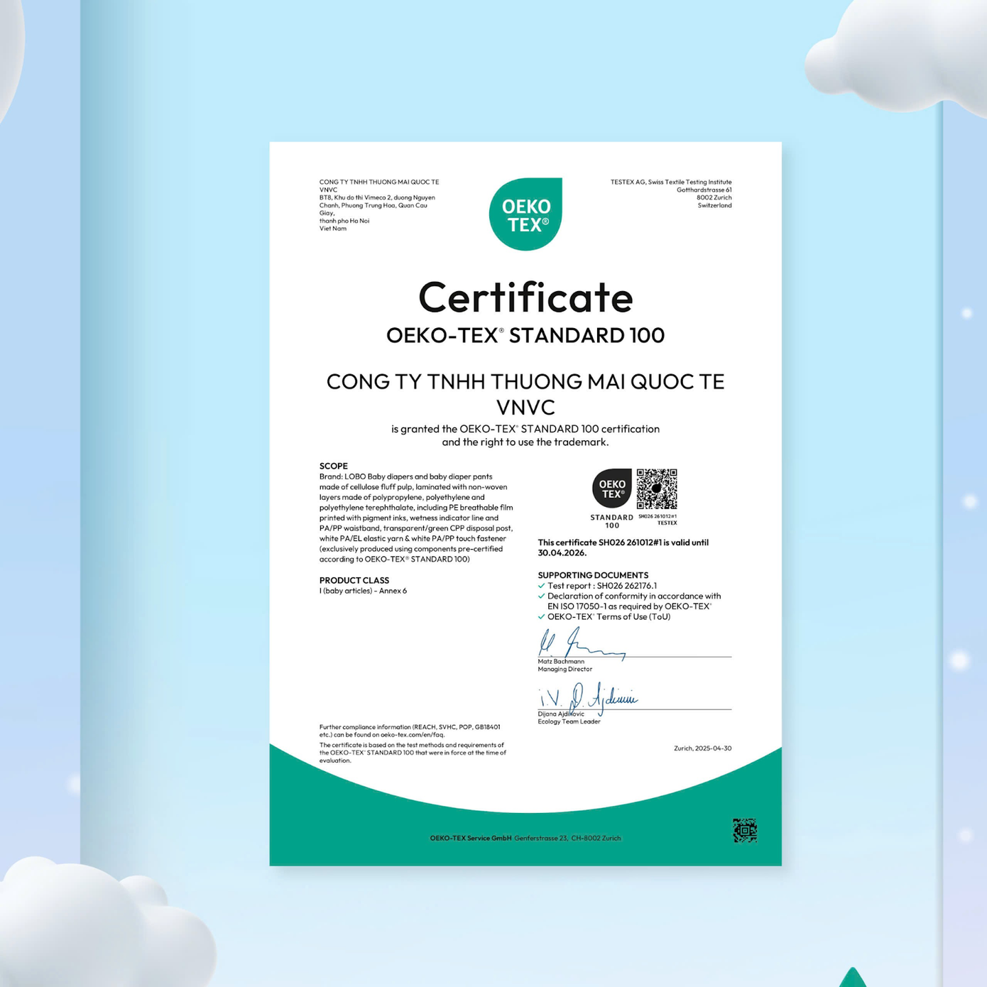Trong bối cảnh người tiêu dùng ngày càng quan tâm đến sự minh bạch và an toàn trong sản phẩm chăm sóc trẻ em, việc Lobo trở thành một trong những thương hiệu tã-bỉm của Việt Nam đạt đồng thời hai chứng nhận Dermatest và OEKO-TEX không chỉ là bước tiến lớn mà còn là cam kết lâu dài về trách nhiệm trong từng chi tiết sản phẩm.