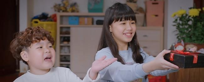 Chưa dừng lại ở đó, Đức "xoăn" còn gọi 2 con đưa một hộp quà ra để tặng cho vợ. Bé Sam (Bảo Linh) bật mí đó là món quà mẹ thích nhất và khi mở quà, biểu cảm của Vân Khánh thật sự rất vui. Món quà mà bố con Đức "xoăn" tặng Vân Khánh là gì mà khiến cô cười tươi như vậy?