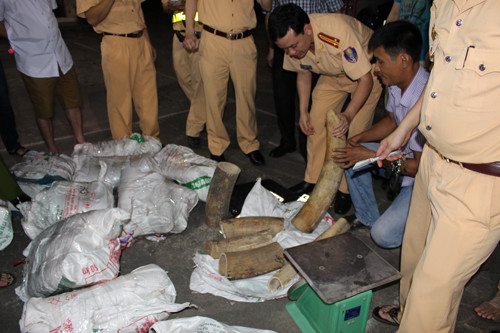 Tiếp tục mở các bao tải này ra, qua kiểm đếm xác định có 107 đoạn ngà voi nặng 553,5 kg và một bộ BKS ô tô số 29C-315.68 trên xe. Quá trình đấu tranh, đến sáng 22/5, đối tượng này khai nhận tên là Nguyễn Quang Huy (SN 1988), trú tại xã Hoàng Đồng, thành phố Lạng Sơn, tỉnh Lạng Sơn. Huy khai đang vận chuyển số ngà voi trên từ Thường Tín (Hà Nội) về Lạng Sơn thì bị bắt. Theo ước tính ban đầu, số ngà voi này của khoảng 20 con voi.