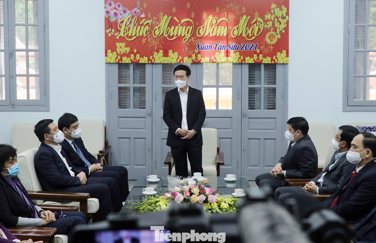 “Xin gửi đến toàn thể cán bộ, công nhân viên của Viện, trong đó có những bác sĩ đang ở những điểm nóng của vùng dịch những lời thăm hỏi, lời chúc năm mới thật bình yên, an lành. Chúc các đồng chí tiếp tục đạt được những kết quả tốt hơn, cao hơn để khống chế, kiểm soát dịch bệnh, đem tới sự bình yên cho đất nước”, Thường trực Ban Bí thư nói.