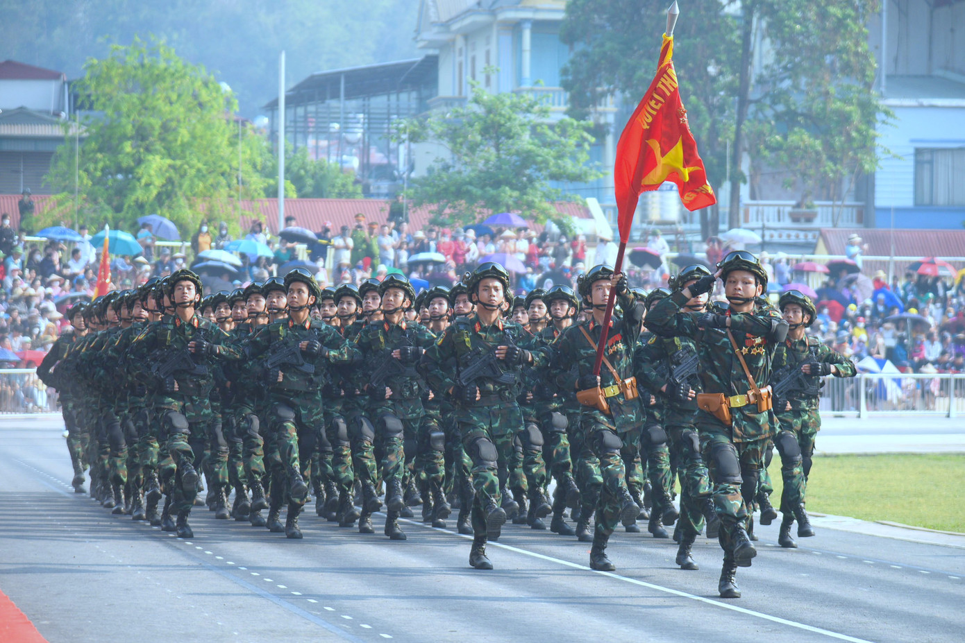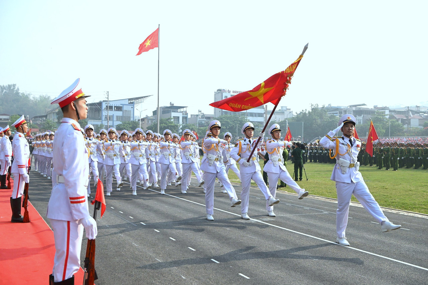 | Theo kế hoạch, trước khi làm nhiệm vụ chính thức tại Lễ kỷ niệm diễn ra vào ngày 7/5, các lực lượng diễu binh, diễu hành sẽ có các buổi sơ duyệt, tổng duyệt trong đầu tháng 5. |