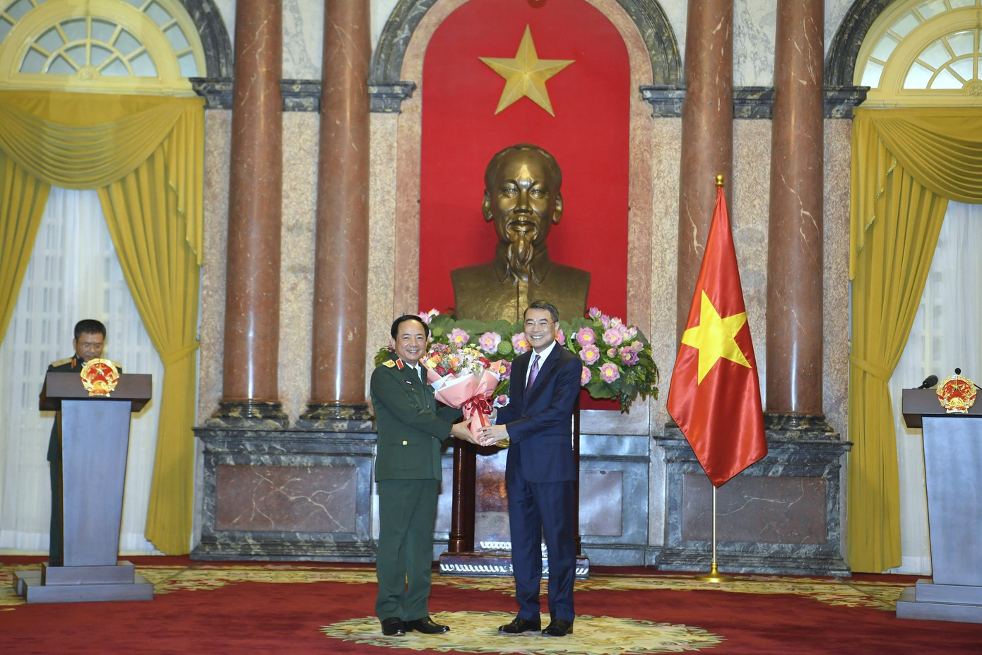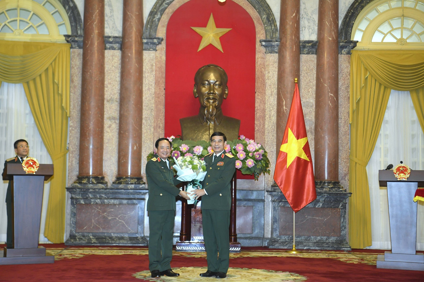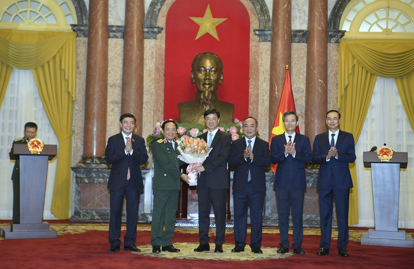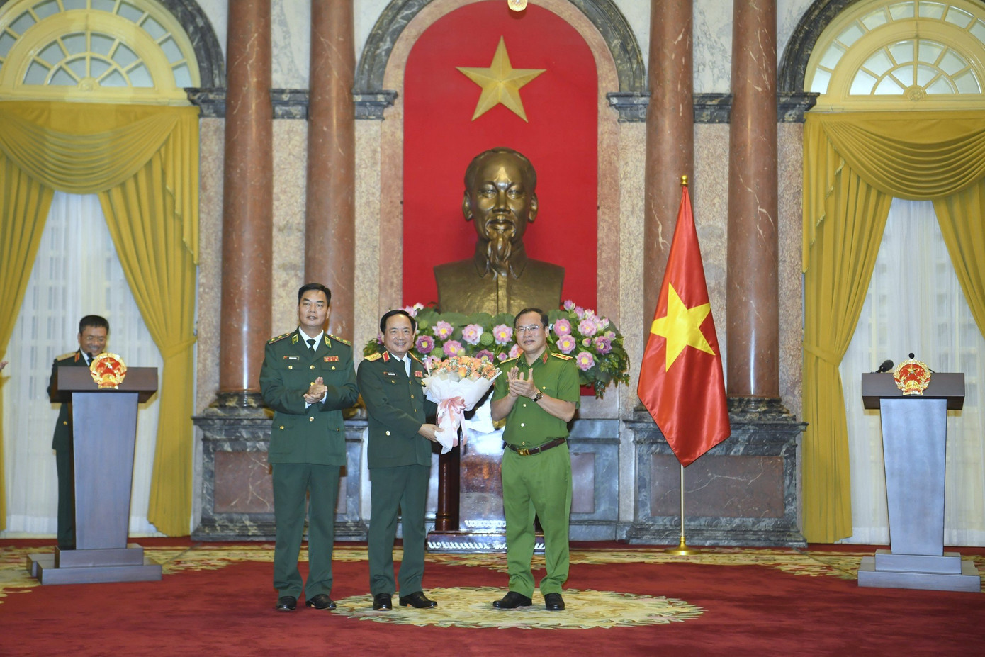 Tại buổi lễ, Chủ tịch nước Tô Lâm đã trao Quyết định bổ nhiệm chức vụ Chủ nhiệm Tổng cục Chính trị Quân đội nhân dân (QĐND) Việt Nam và tặng hoa chúc mừng Thượng tướng Trịnh Văn Quyết.
