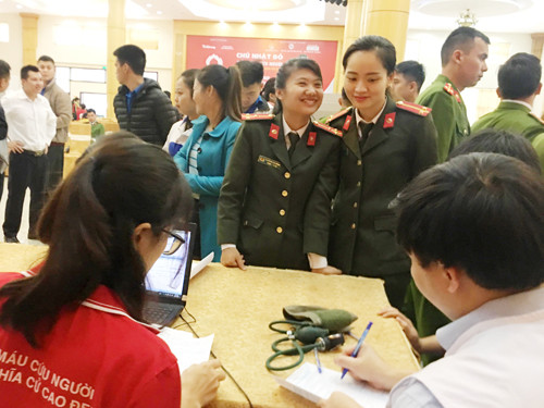 Các nữ chiến sĩ công an nhân dân xinh tươi cũng không ngại đau để tham gia hiến máu