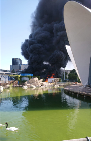 Vụ cháy được báo cáo vào khoảng 11 giờ sáng (theo giờ địa phương), ngày 9/7. Ngay khi du khách thông báo đã nhận thấy khói gần một khu vực cá mập, lực lượng cảnh sát và cứu hộ đã ngay lập tức có mặt. Gần 2.000 người đã sớm được sơ tán khẩn cấp.