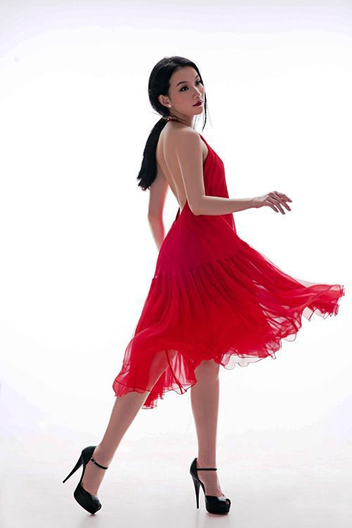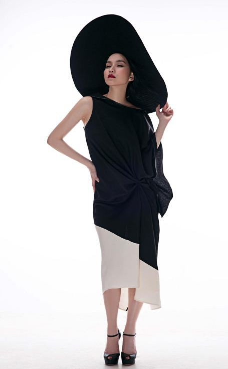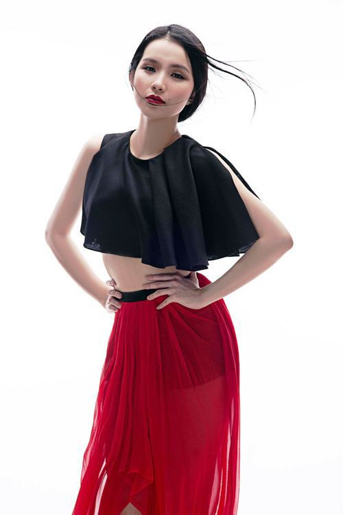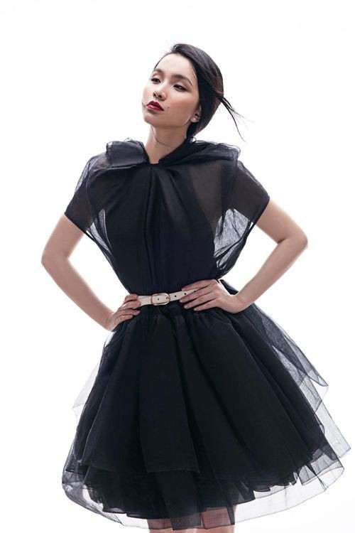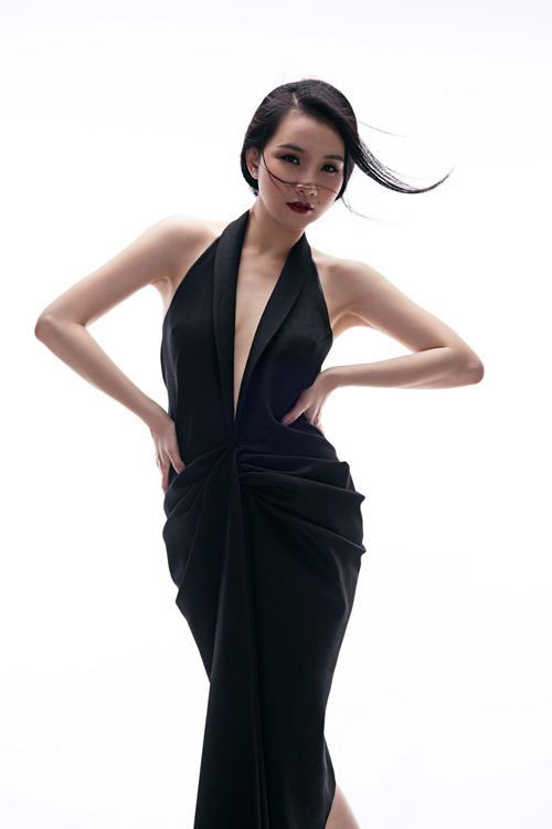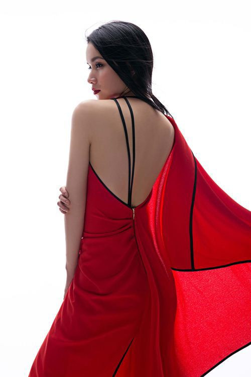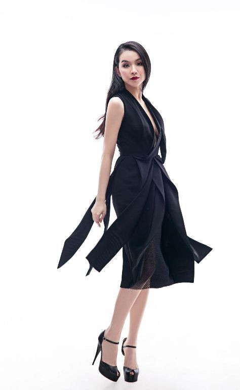 Cô khoe dáng trong chiếc đầm với những đường cắt bất đối xứng.