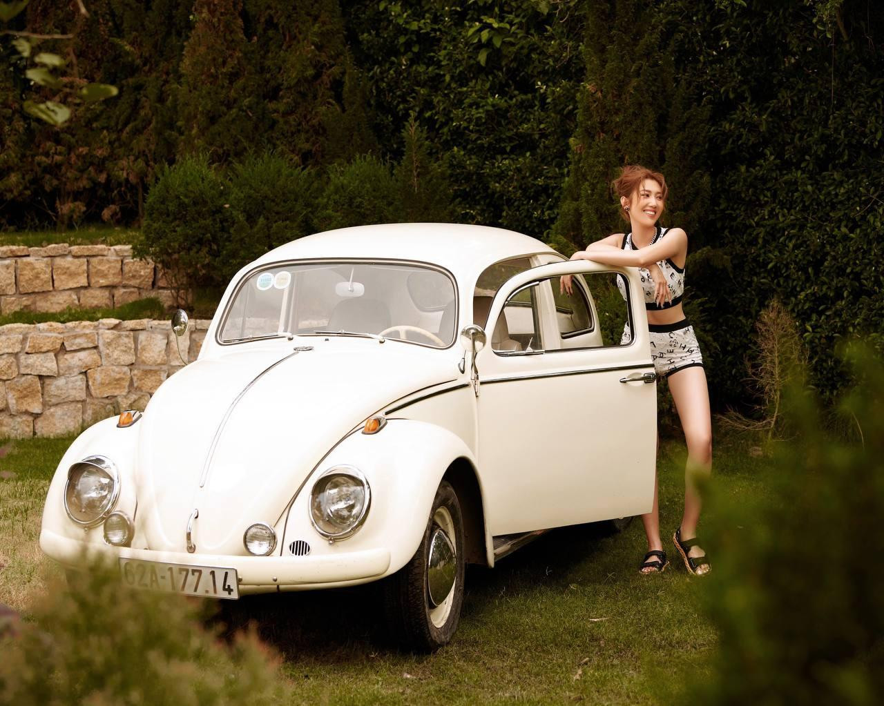 Trong bộ ảnh mang hơi hướng retro, Thúy Ngân khoe dáng vóc thon gọn, khỏe khoắn với các item như áo croptop, quần short, chân váy. Các set đồ giúp nữ diễn viên khoe trọn đôi chân dài và "vòng eo con kiến". Kiểu tóc xoăn nhẹ, bồng bềnh đi kèm lối trang điểm nhẹ nhàng mang đến tổng thể hài hòa cho bộ ảnh.