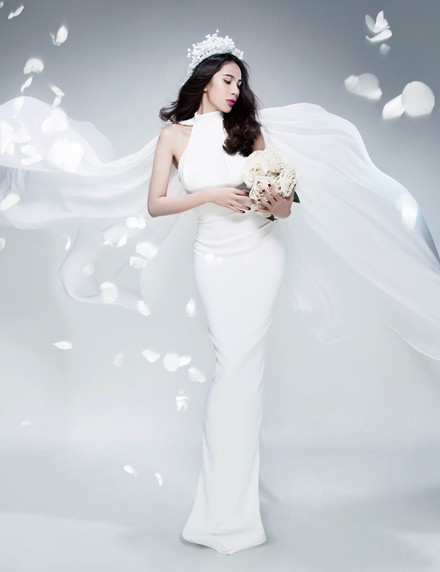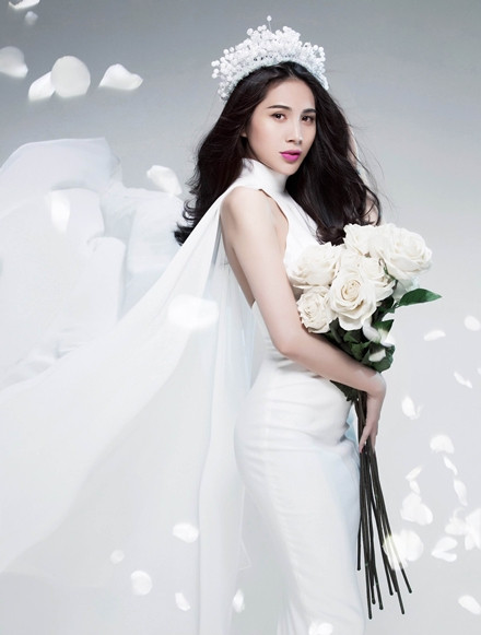 Trong loạt ảnh mới, Thủy Tiên chọn phong cách cô dâu với tông màu trắng tinh khôi.