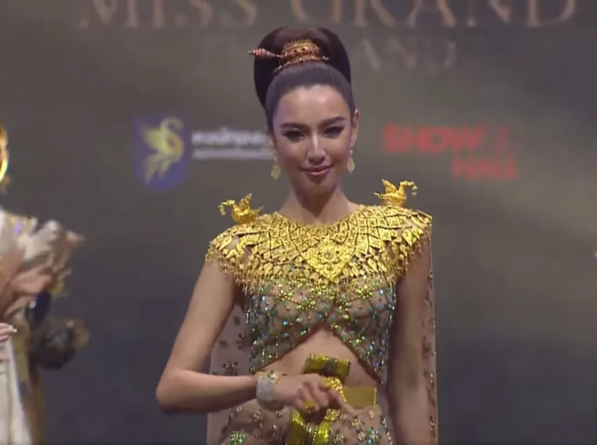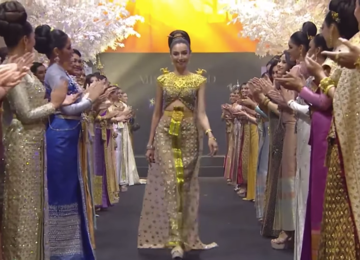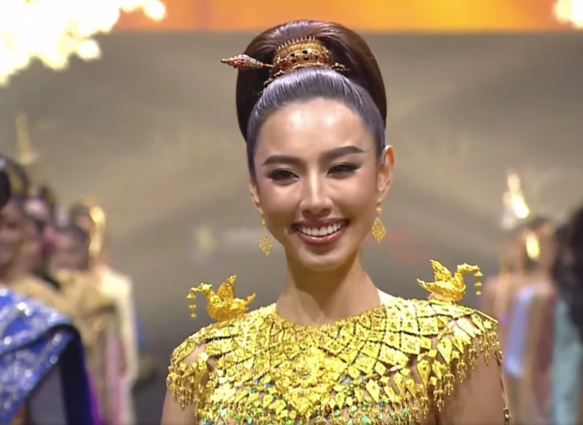 Xuất hiện trên sân khấu, Thuỳ Tiên khoác lên mình bộ trang phục dát vàng mang những màu sắc văn hoá dân tộc đặc trưng của Thái Lan. Thiết kế được đính kết rất cầu kỳ và tỉ mỉ và được dát số lượng trang sức đắt giá lấp lánh đã mang lại cho Thuỳ Tiên vẻ đẹp vô cùng lộng lẫy và quyền lực.
