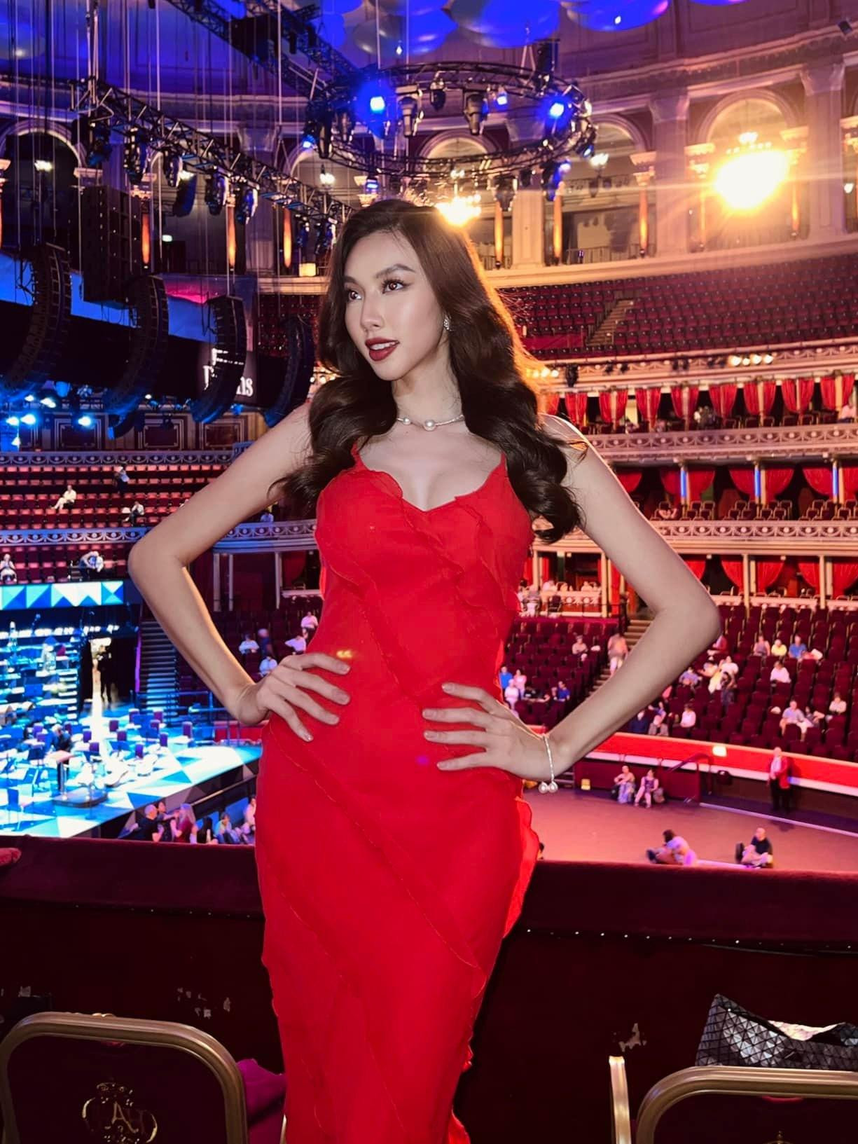 | Thùy Tiên diện váy đỏ lộng lẫy, quyến rũ khi đi nghe nhạc ở Anh trước đó. |