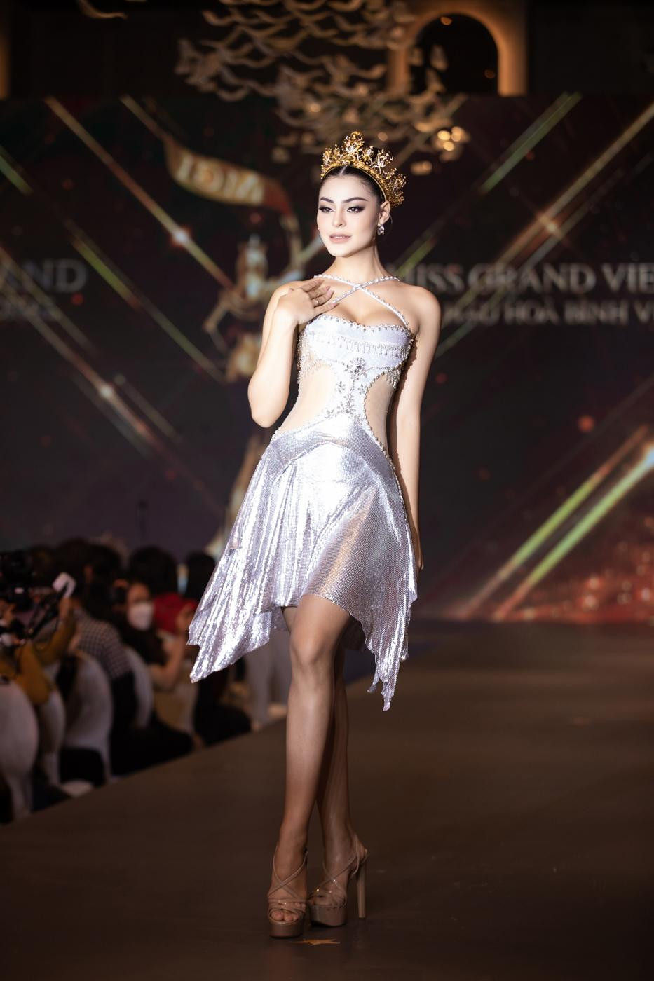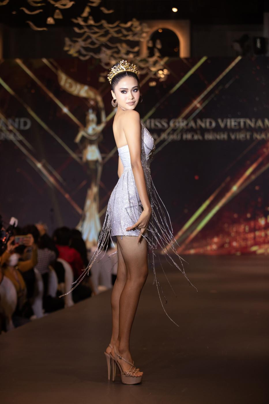 | Tại buổi họp báo chiều 7/6, Hoa hậu Thuỳ Tiên và các người đẹp đã có màn ra mắt khán giả ấn tượng khi tái hiện lại màn hô tên của mình khi tham dự cuộc thi Miss Grand International. Hoa hậu Thuỳ Tiên gây thích thú với màn hô tên kéo dài, từng làm nên 'thương hiệu' của cô khi tham dự Miss Grand 2021. |