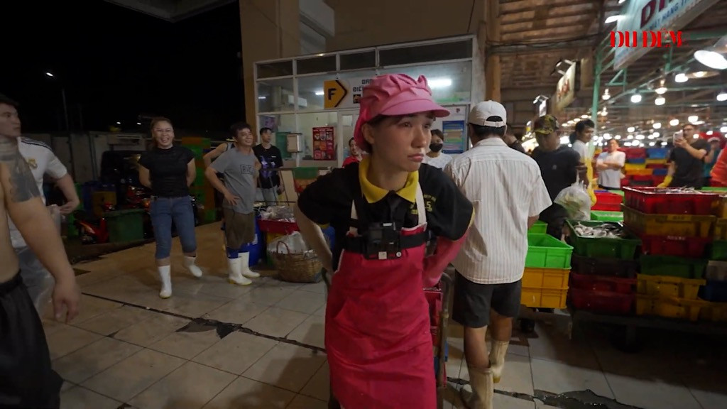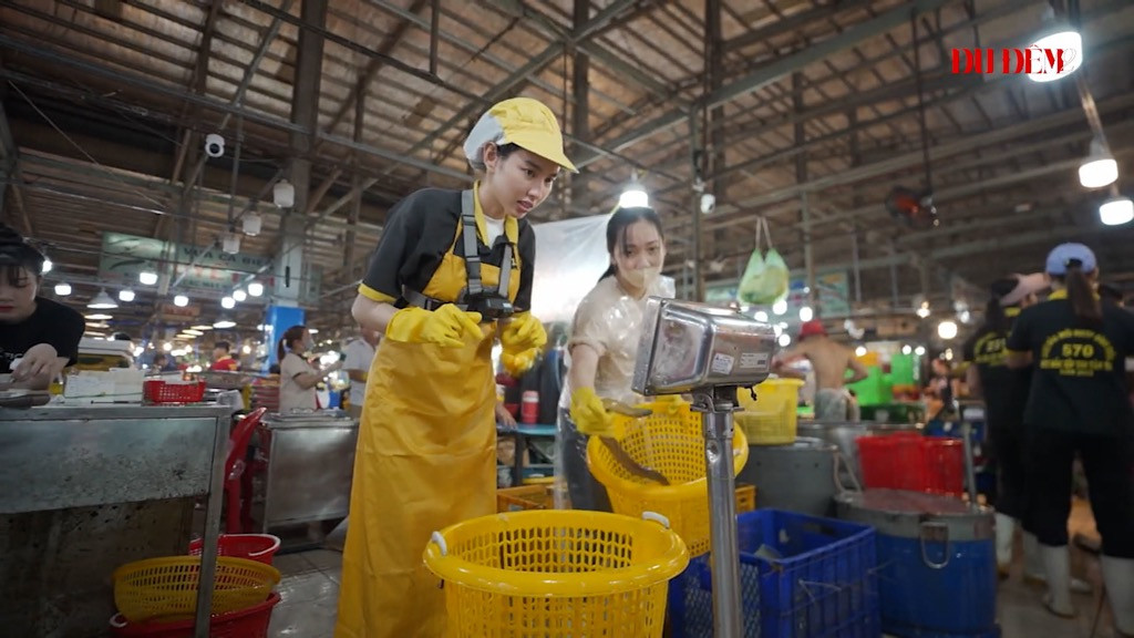 Bốc xếp hàng hóa tại chợ đầu mối vốn là một công việc nặng nhọc đòi hỏi sức khỏe bền bỉ của nam giới, nhưng do cuộc sống khó khăn nên cũng có không ít phụ nữ đành chọn gắn bó với nghề này. Họ thường làm việc từ 9-10 giờ đêm đến tận 6-7 giờ sáng. Thùy Tiên và Hòa Minzy lần đầu tiên trải nghiệm và cảm nhận được phần nào nỗi nhọc nhằn của những người phụ nữ làm cửu vạn.