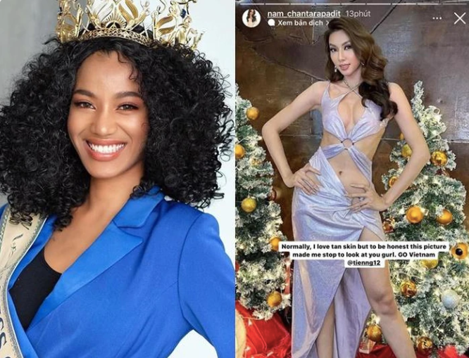 Cụ thể, Nam Chantarapadit - Miss Grand Thailand 2020, top 10 Miss Grand International 2020 đã từng chia sẻ hình ảnh của Thuỳ Tiên lên trang cá nhân của cô kèm lời động viên: “Bình thường tôi chỉ thích làn da nâu, nhưng thực sự khi nhìn bức ảnh này, tôi phải ngưng lại để ngắm cô ấy. Cố lên Việt Nam!".