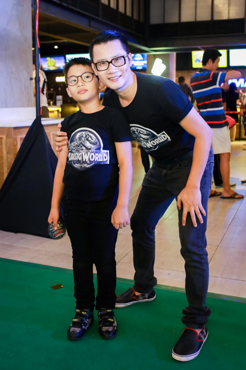 Ca sĩ Hoàng Bách dẫn con trai đi xem phim.