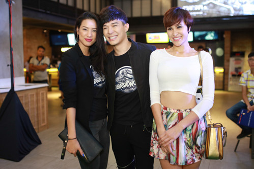 Nam ca sĩ cùng Phương Mai vui mừng khi hội ngộ bạn chơi trong chương trình 'Điệp vụ tuyệt mật' là người mẫu Lily Nguyễn.