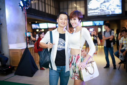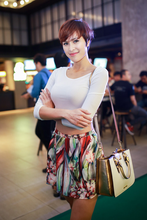 Siêu mẫu Phương Mai cũng mặc crop-top khoe eo thon gợi cảm khi đi xem phim.