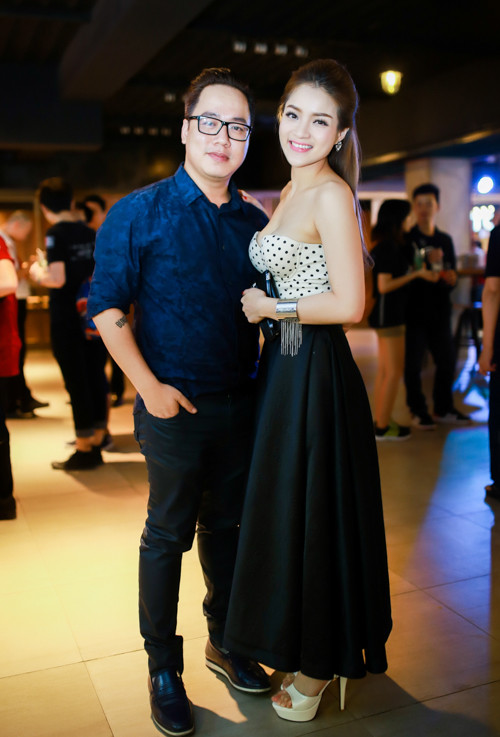 Nữ ca sĩ hội ngộ MC Tùng Leo ở sự kiện.