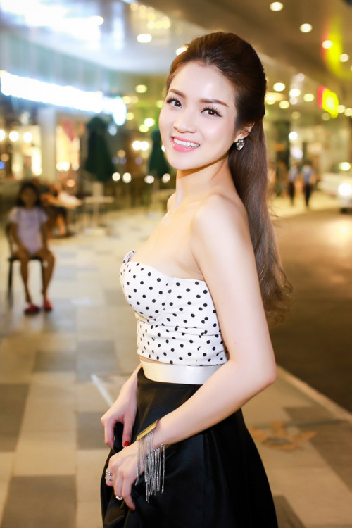 Thủy Top rạng rỡ khoe vẻ gợi cảm trước ống kính.
