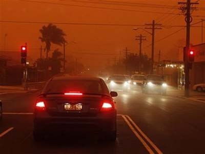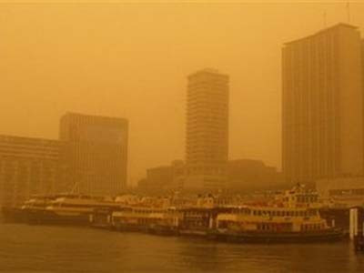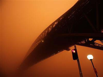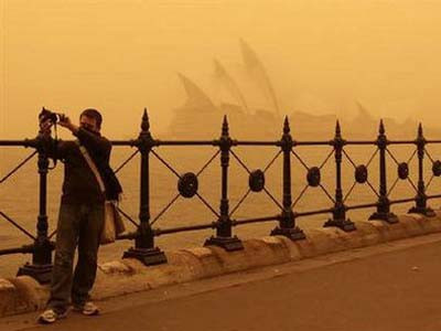 Nhà hát opera nổi tiếng của Sydney mờ mịt trong bụi.