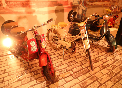 Nhiều loại xe cổ được trưng bày trên lối đi.