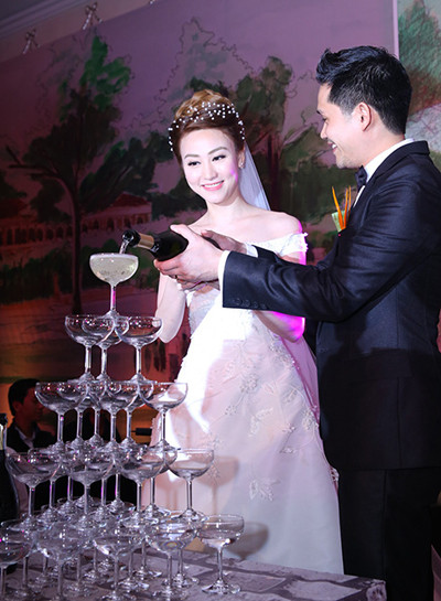 Đôi uyên ương tiến hành các nghi thức của tiệc cưới.