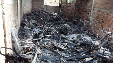 Đám cháy đã thiêu rụi hoàn toàn khoảng 60 chiếc xe gắn máy của khách cầm đồ và làm nhiều phòng trọ bị hư hỏng nặng với thiệt hại hàng trăm triệu đồng.