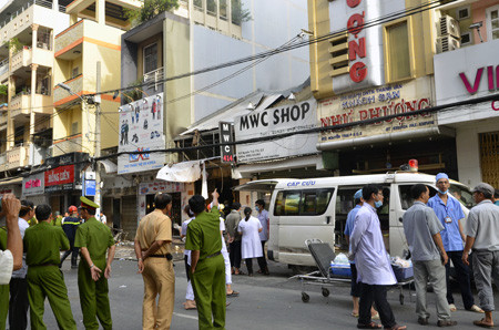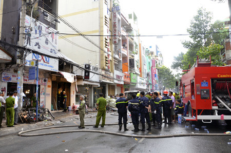 Nhận được tin báo, Cảnh sát PCCC TPHCM đã điều động lực lượng chữa cháy chuyên nghiệp đến hiện trường triển khai phá cửa dập lửa. Phía bên trong tiệm tóc chứa nhiều đồ đạc chất dễ cháy đã gây khó khăn cho các chiến sĩ.
