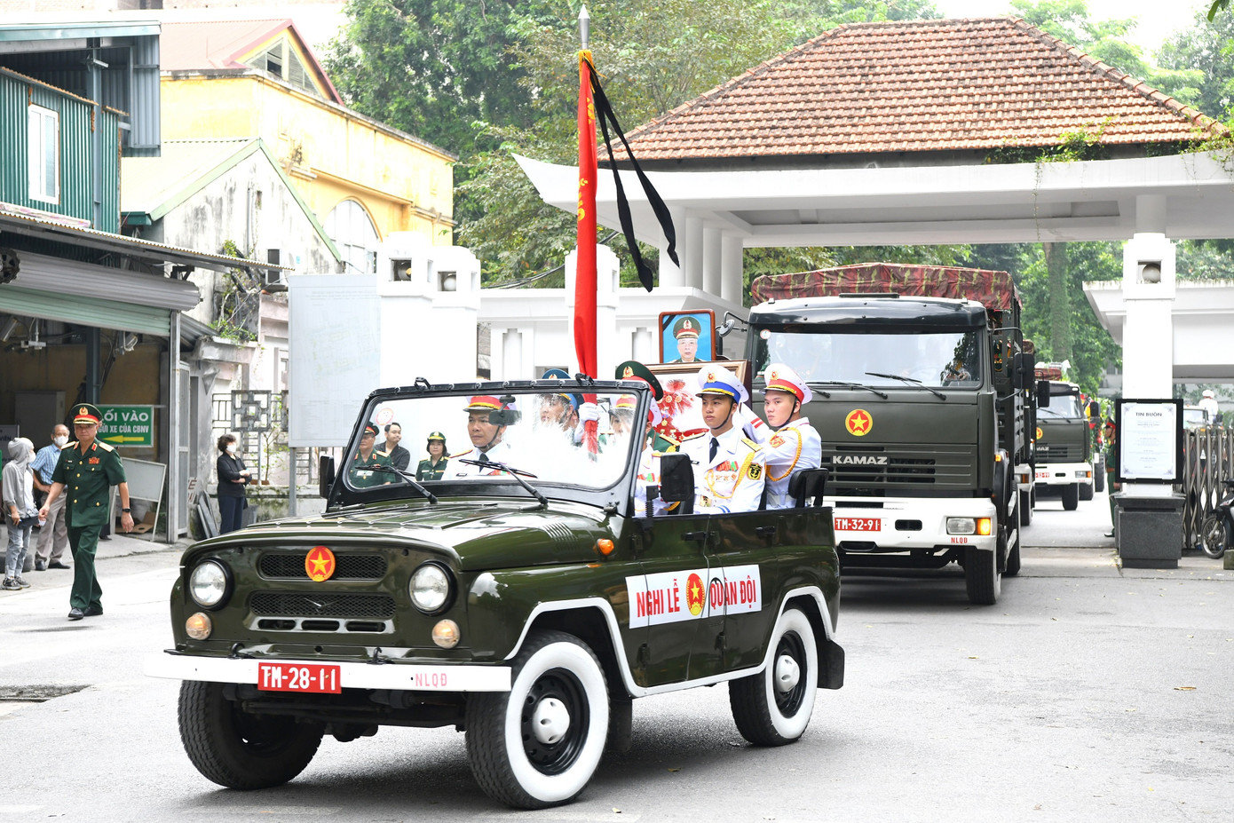 | Đoàn Nghi lễ Quân đội hộ tống linh cữu Thượng tướng Nguyễn Chí Vịnh về nơi an nghỉ cuối cùng tại Nghĩa trang Thiên Đức ở tỉnh Phú Thọ. |