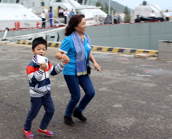 Bảo Nam ôm chặt bố. Trung úy Tống Tùng bảo con trai, bố đi công tác, ít bữa nữa bố lại về, con đừng khóc nhé. Được vài phút, anh lại phải vào cảng và lên tàu