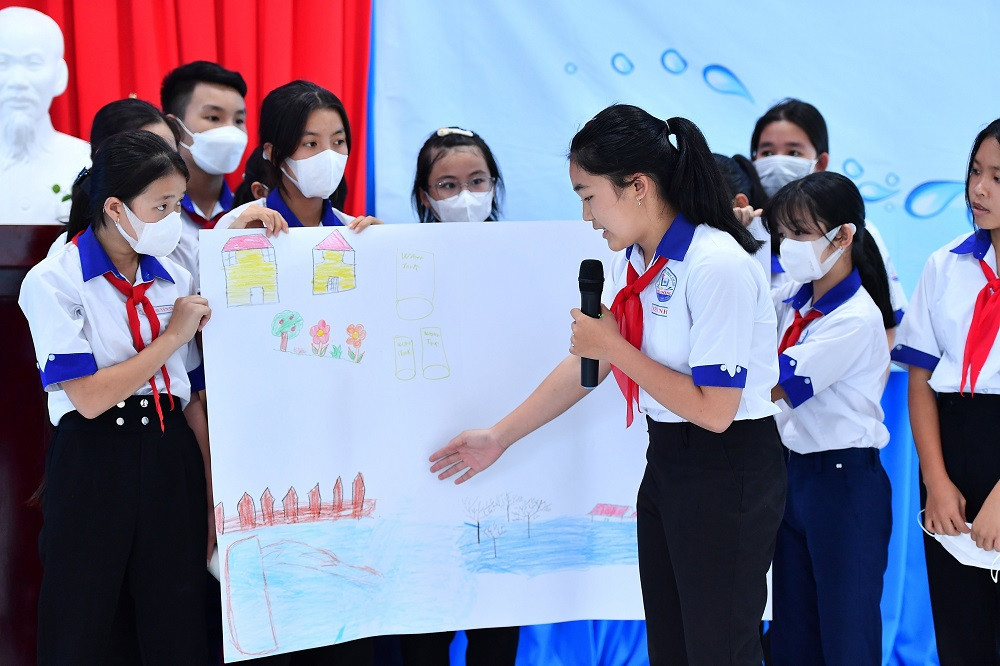 Các bạn học sinh ở Tiền Giang cũng có mặt và hào hứng tham gia vào buổi tập huấn, chia sẻ kiến thức được tổ chức nhân dịp này. Các bạn cùng nhau sôi nổi bàn luận về các vấn đề bảo vệ môi trường cũng như biến đổi khí hậu, một trong những nguyên nhân gây ra hạn mặn, từ đó thêm nâng cao ý thức để bảo vệ môi trường sống xung quanh.