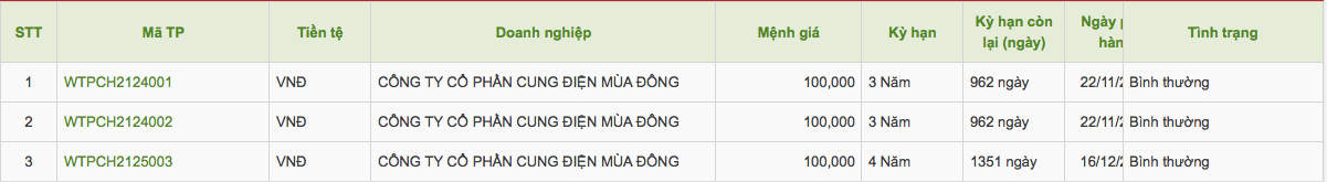 Lô trái phiếu WTPCH2124003 có giá trị lớn nhất (3.230 tỷ đồng), được Công ty Cung điện Mùa Đông hoàn tất phát hành ngày 21/2/2022. Tuy nhiên, các thông tin liên quan đến lãi suất, trái chủ, tổ chức tư vấn phát hành đều không được công bố công khai.
