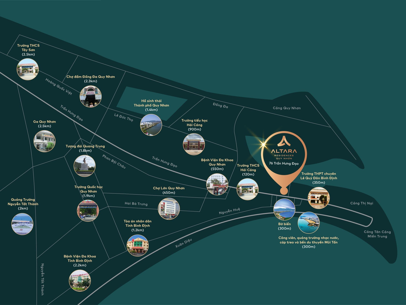 Không phải ngẫu nhiên cộng đồng cư dân nơi đây lại gọi Altara Residences là dự án “một bước chân ngàn tiện ích”. Bởi thực tế, tọa lạc tại vị trí trung tâm - 76 Trần Hưng Đạo, phường Hải Cảng, Altara Residences được bao xung quanh hàng loạt các dịch vụ tiện ích đã hiện hữu.