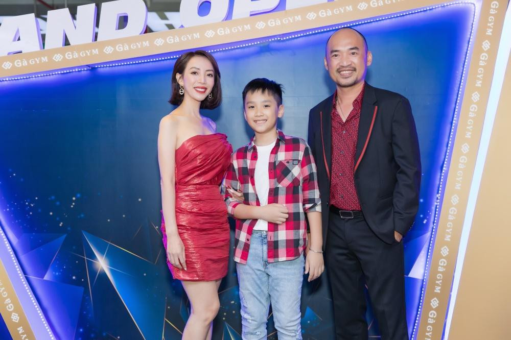 Diễn viên Thu Trang - bà xã của Tiến Luật cũng đưa con trai Andy đến sự kiện để chúc mừng chồng lên chức ông chủ. Thu Trang diện mẫu váy đỏ nổi bật, thu hút nhiều sự chú ý. Cả gia đình Thu Trang - Tiến Luật chiếm trọn spotlight khi mang đến không khí vui vẻ, hài hước.