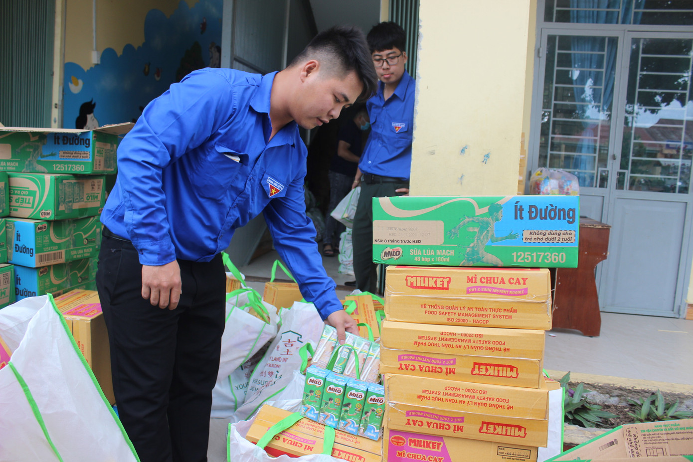 | Các tình nguyện viên của chương trình đang vận chuyển quà vào khi vực khám chữa bệnh cho người dân. (Ảnh: Phạm Nguyễn). |