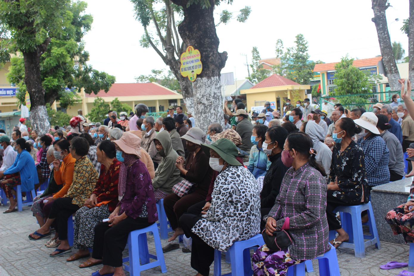 | Ngay từ sáng sớm, rất đông bà con huyện Đức Hòa đã tập trung về trường Tiểu học Tân Mỹ để tham dự chương trình. |