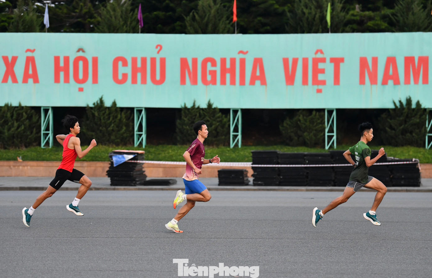 Tại Quảng trường Nhân dân mỗi buổi sáng xuất hiện nhiều vận động viên tập luyện, trong đó có các vận động viên chuyên nghiệp của các tỉnh, thành. Họ lên từ rất sớm để làm quen với khí hậu và đường chạy.