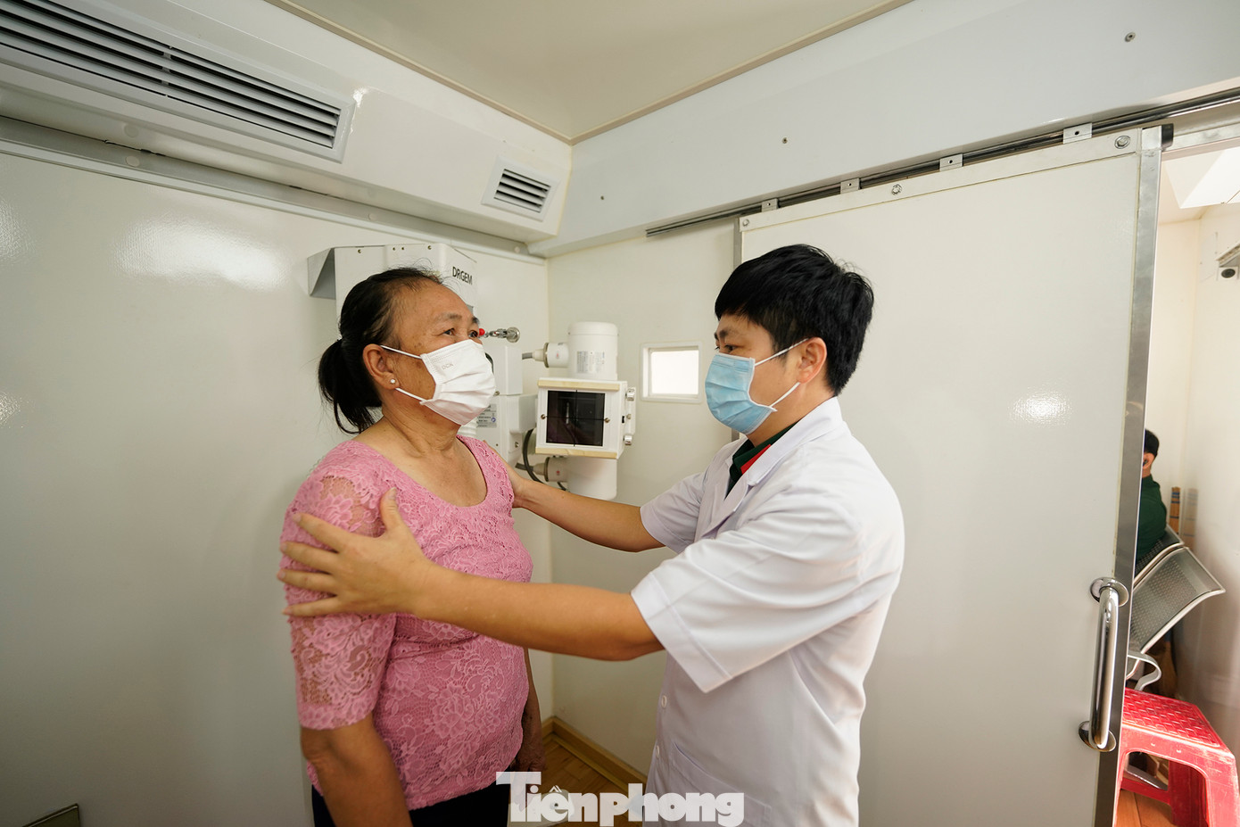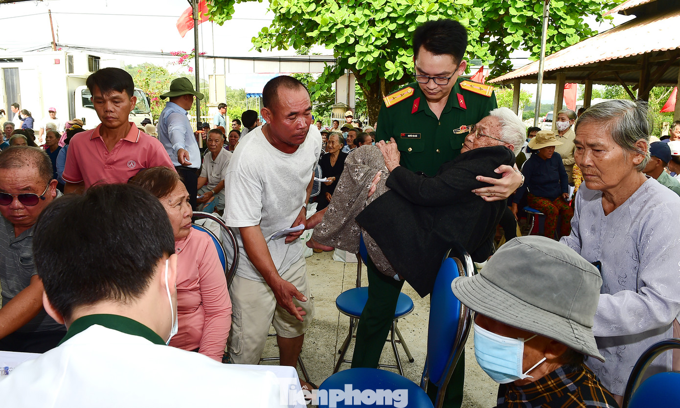 | Đoàn công tác Bệnh viện Quân y 175 thăm khám cho người dân có nhiều chuyên gia, chủ nhiệm các khoa của bệnh viện. |