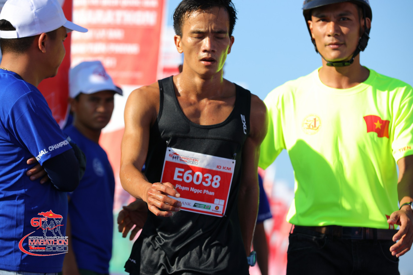 Phạm Ngọc Phan (Bình Thuận), sinh năm 1995, bắt đầu chạy bộ từ năm lớp 8 và chính thức được đào tạo chuyên nghiệp từ năm 20 tuổi khi gia nhập đội tuyển điền kinh của tỉnh. Thời điểm đó, anh đang theo học tại Đại học Thể dục Thể thao TP.HCM. Sở trường của runner này là các cự ly 5km, 10km và 21km. Trong hai năm trở lại đây, Ngọc Phan bắt đầu tham gia full marathon và giành HCĐ cự ly này tại Tiền Phong Marathon năm ngoái với thành tích 2 giờ 28 phút 8 giây.