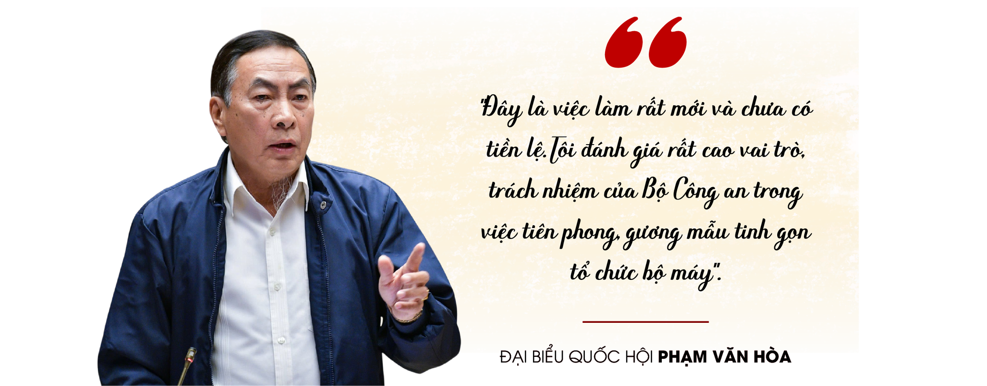 Đại biểu Quốc hội Phạm Văn Hòa (đoàn Đồng Tháp) nhìn nhận, vào năm 2018, Bộ Công an đã tiên phong trong việc bỏ cấp tổng cục. Khi bỏ cấp trung gian, các chỉ đạo, điều hành từ cấp bộ sẽ xuống thẳng cấp cục, như thế việc triển khai thực hiện sẽ nhanh hơn, hiệu quả hơn. “Đây là một bước đột phá rất lớn của Bộ Công an”, ông Phạm Văn Hòa cho hay.