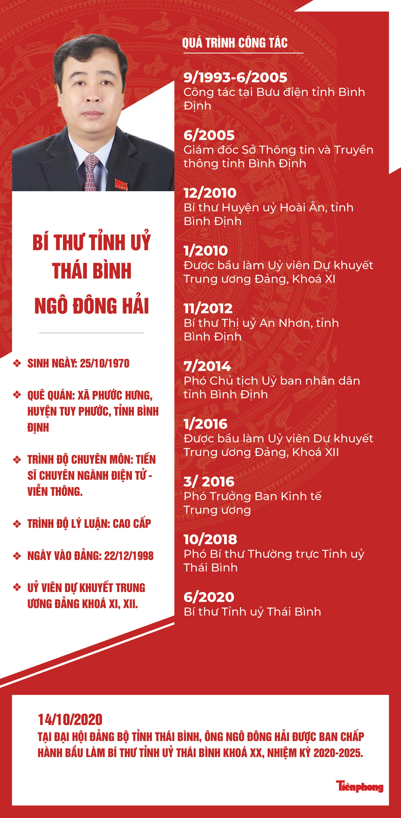 TPO - Tại Đại hội Đảng bộ tỉnh Thái Bình khoá XX, ông Ngô Đông Hải được bầu làm Bí thư Tỉnh uỷ nhiệm kỳ 2020-2025.