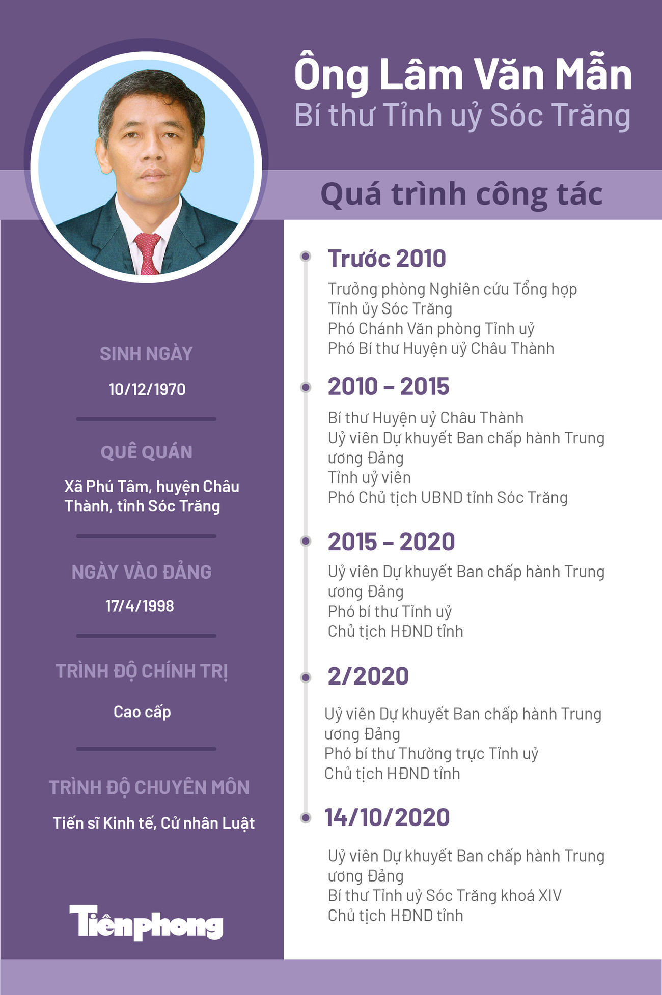 TPO - Ngày 15/10, Đại hội Đại biểu Đảng bộ tỉnh Sóc Trăng lần thứ XIV, nhiệm kỳ 2020 – 2025 đã bầu ông Lâm Văn Mẫn làm Bí thư Tỉnh ủy.